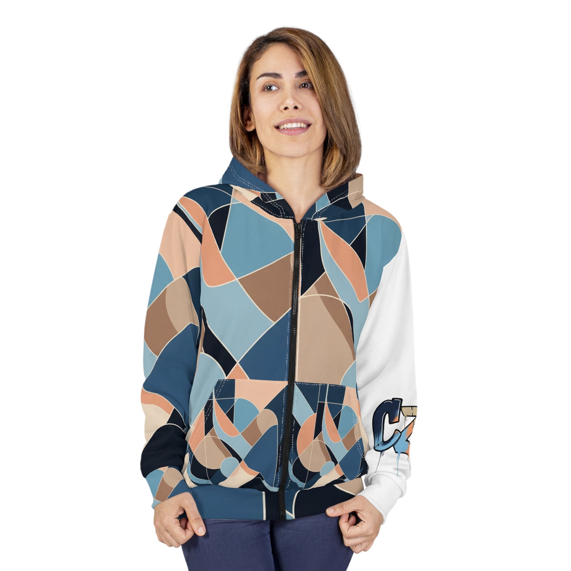 Elevate your streetwear collection with the CZDE Geometric Pattern Hoodie. Featuring bold abstract shapes in soft beige, navy, and sky blue tones, this hoodie combines comfort with cutting-edge design. Crafted with high-quality fabric, it’s lightweight yet cozy, making it perfect for any season. The full zip closure and spacious pockets provide convenience, while the CZDE graffiti logo on the sleeve adds that authentic urban edge. A must-have for those who love style that stands out and speaks confidence. Ideal for casual outings, music festivals, or everyday wear.