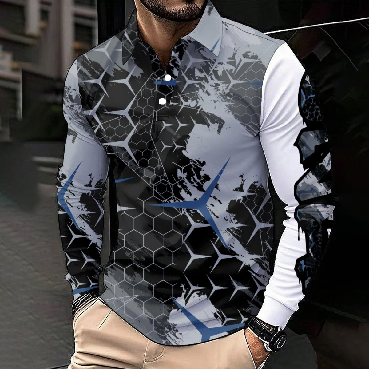 Make a bold statement with this cutting-edge hexagon pattern shirt that perfectly blends modern technology aesthetics with professional sophistication.