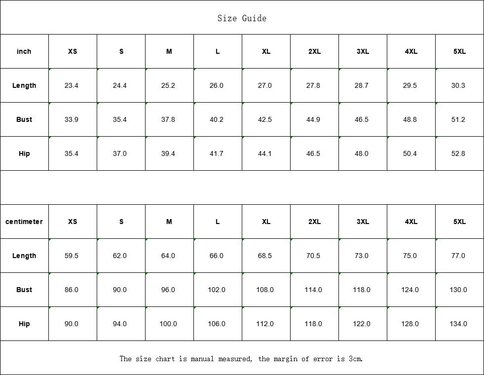 inch | XS | S | M | L | XL | 2XL | 3XL | 4XL | 5XL |