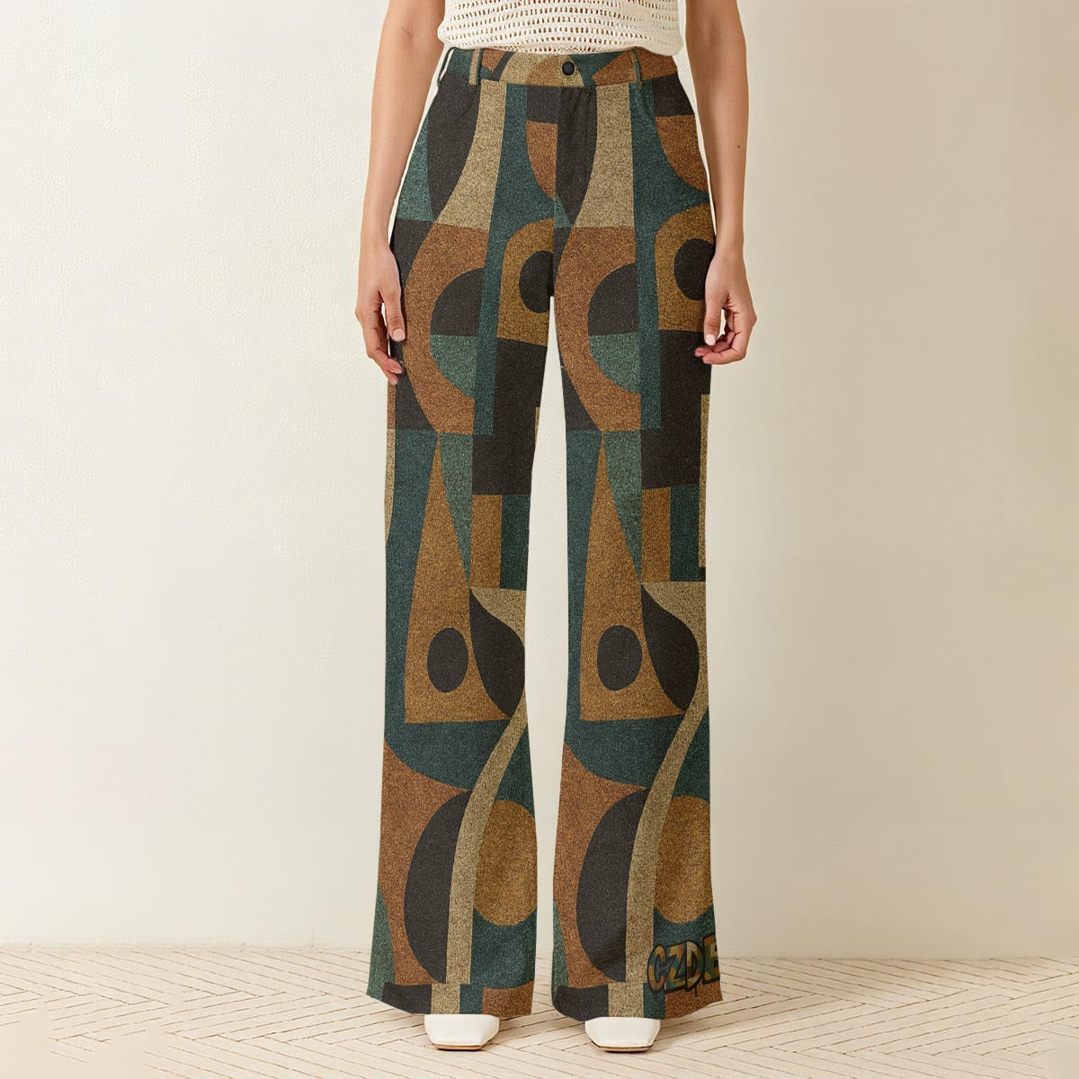 The pants everyone's obsessing over! These wide leg pants with retro geometric print are the must-have piece of the moment. Perfect for creating that aesthetic look that's taking social media by storm.
