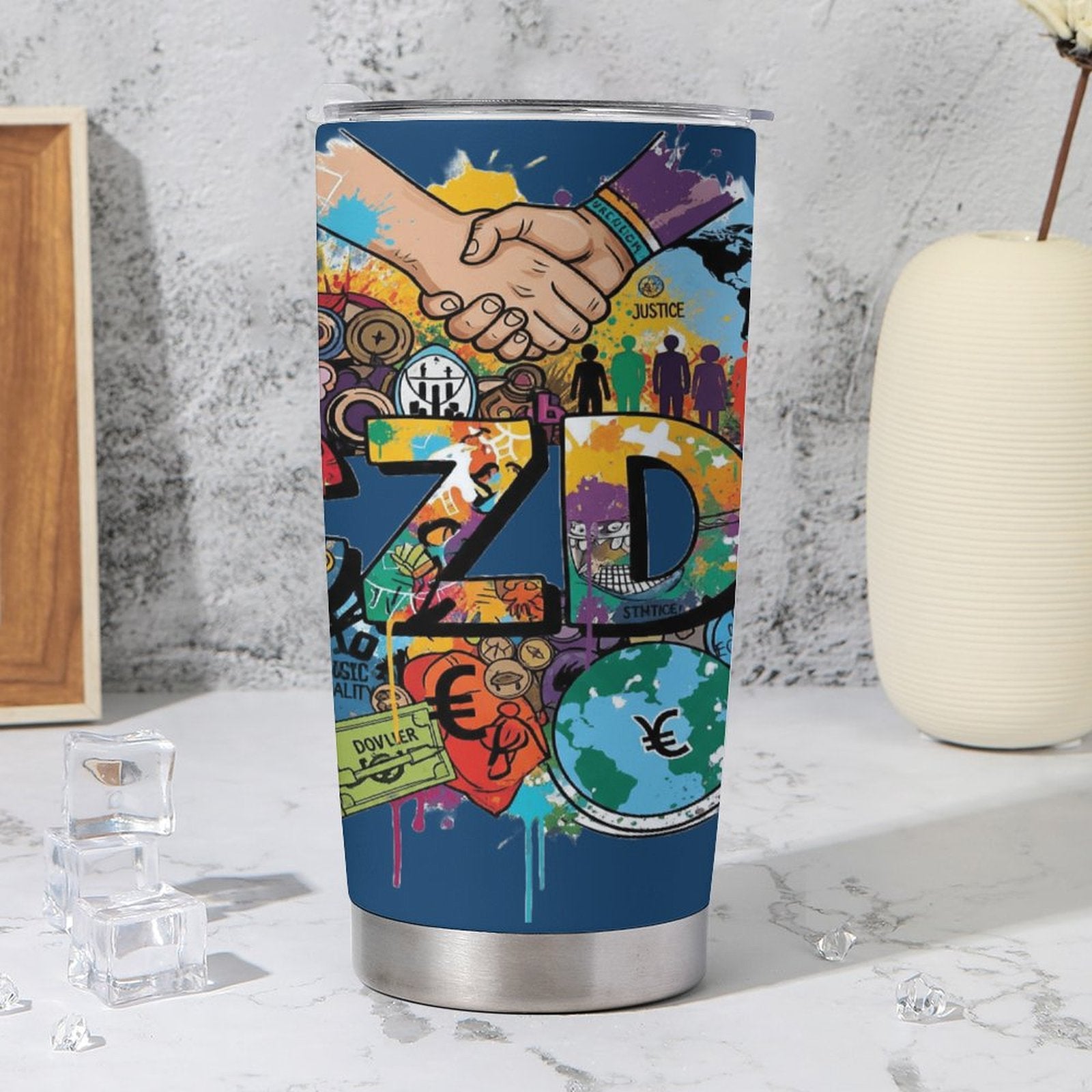 Bring unity and creativity to your daily routine with this vibrant CZDE graffiti-style tumbler. Designed to celebrate diversity, art, and peace, this insulated travel mug features a rust-proof stainless steel interior, secure silicone lid, and bold street-art details. Perfect for coffee, tea, or cold drinks on the go.