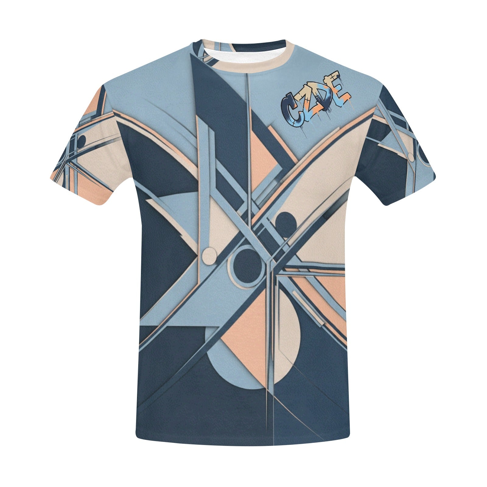 Elevate your streetwear game with this CZDE abstract geometric graphic t-shirt. Designed with bold intersecting shapes in navy, peach, and cream tones, this tee brings modern art to your everyday style. The soft fabric and unisex fit make it perfect for both men and women, while the graffiti-inspired CZDE logo adds an urban edge. Ideal for casual outings, festivals, or daily wear, this t-shirt pairs effortlessly with jeans, joggers, or shorts for a confident street vibe. Stand out and express your individuality with a design that’s more than fashion—it’s a statement.
