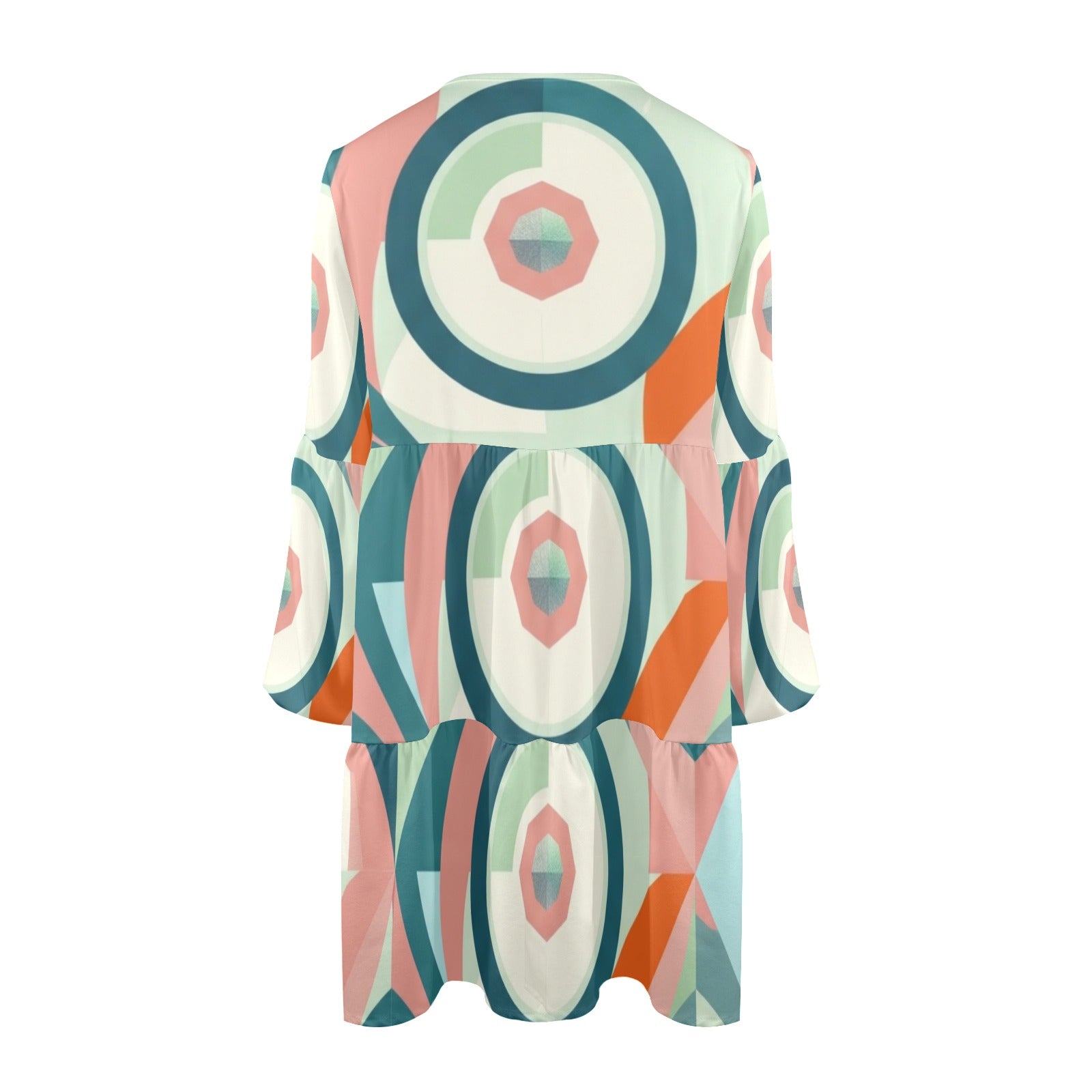 Step into effortless style with the CZDE Retro Boho Long Sleeve Dress, designed for women who love comfort and bold fashion. This flowy dress features a striking geometric retro print in soft pastel and vibrant tones, making it the perfect mix of elegance and artistic expression. The lightweight fabric offers a relaxed fit that moves with you, while the long puff sleeves and V-neckline bring a modern feminine touch.