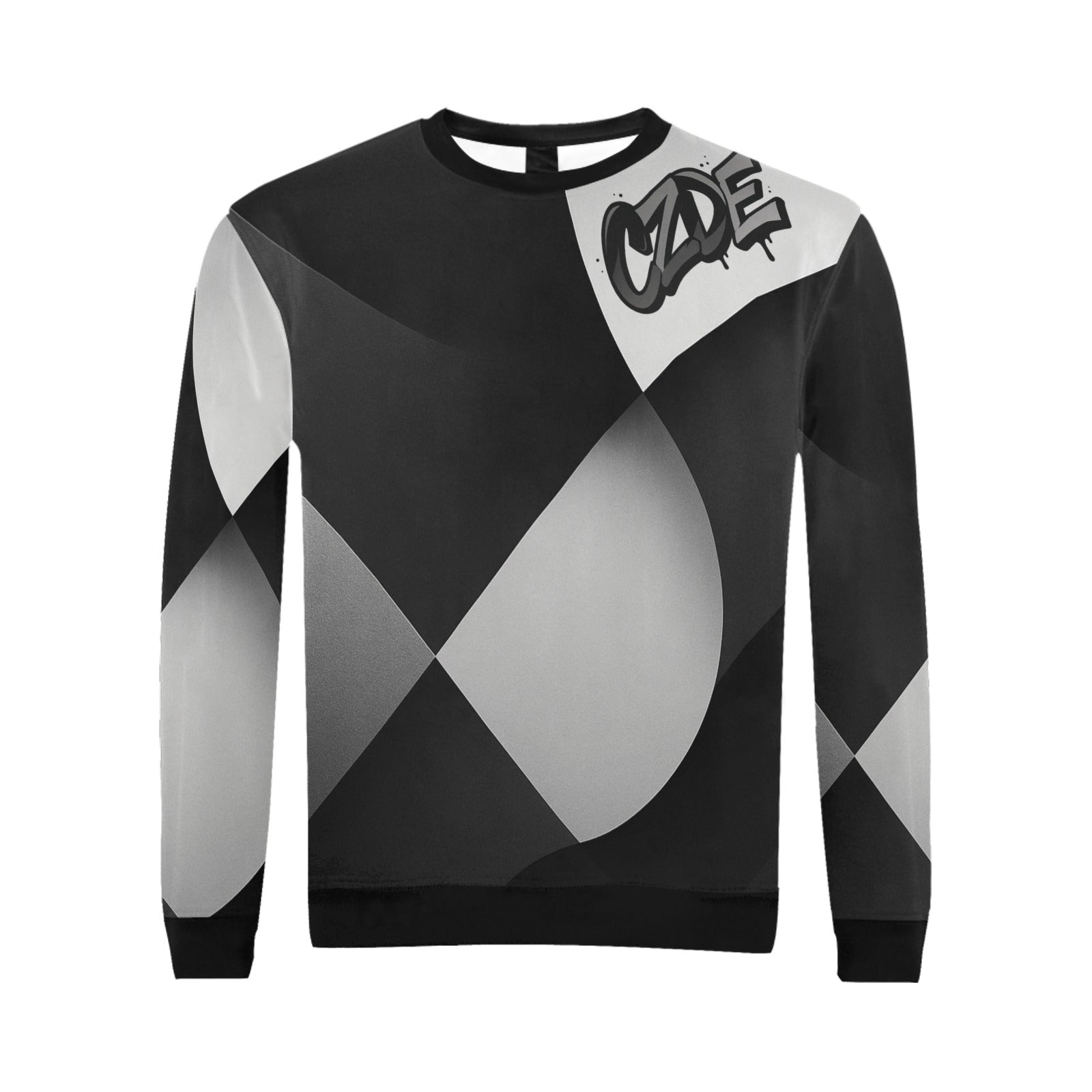 CZDE Men’s Geometric Streetwear Sweatshirt – Black & Gray Urban Style