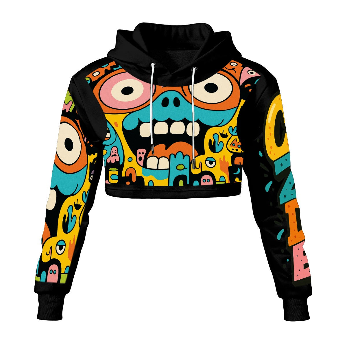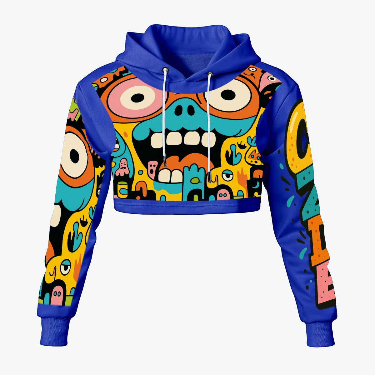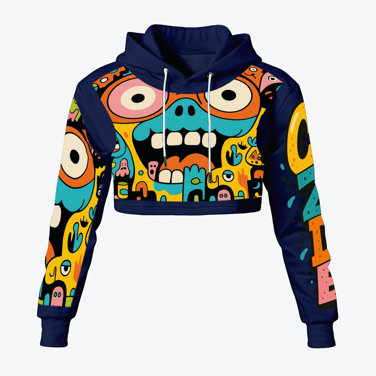 Designed for those who love vibrant, cartoon-inspired fashion, this cropped hoodie is perfect for casual outings, festivals, or simply standing out in your everyday look. The colorful graffiti-style artwork combined with a flattering cropped cut gives you an urban aesthetic that screams confidence.