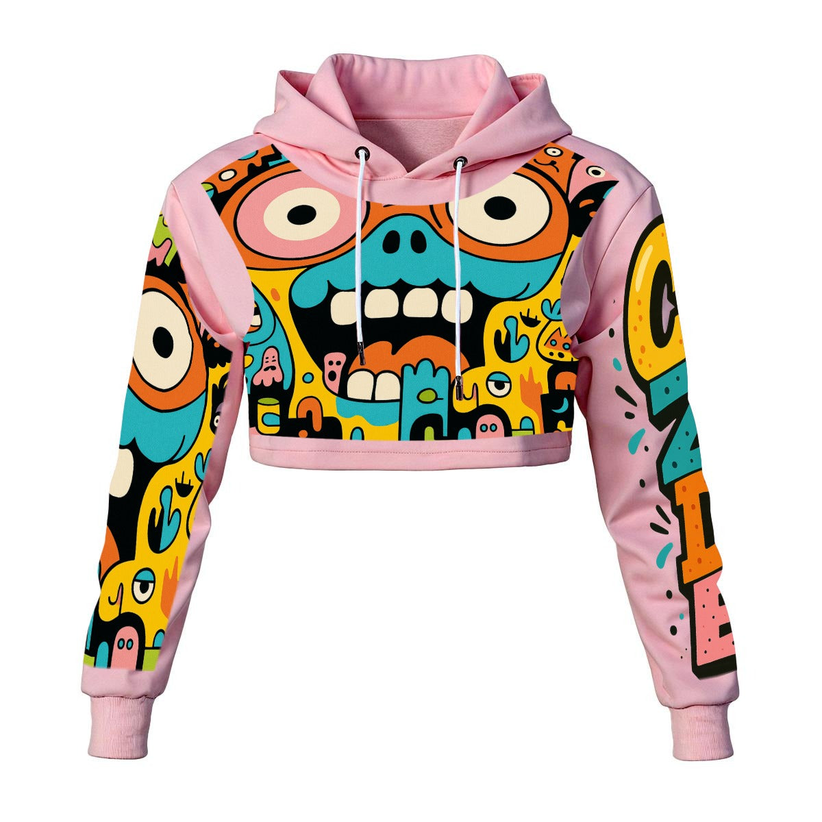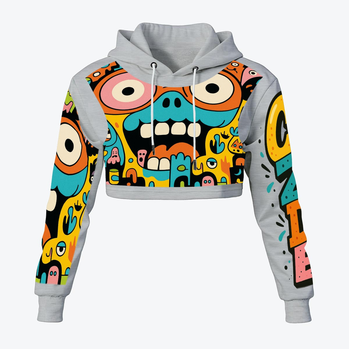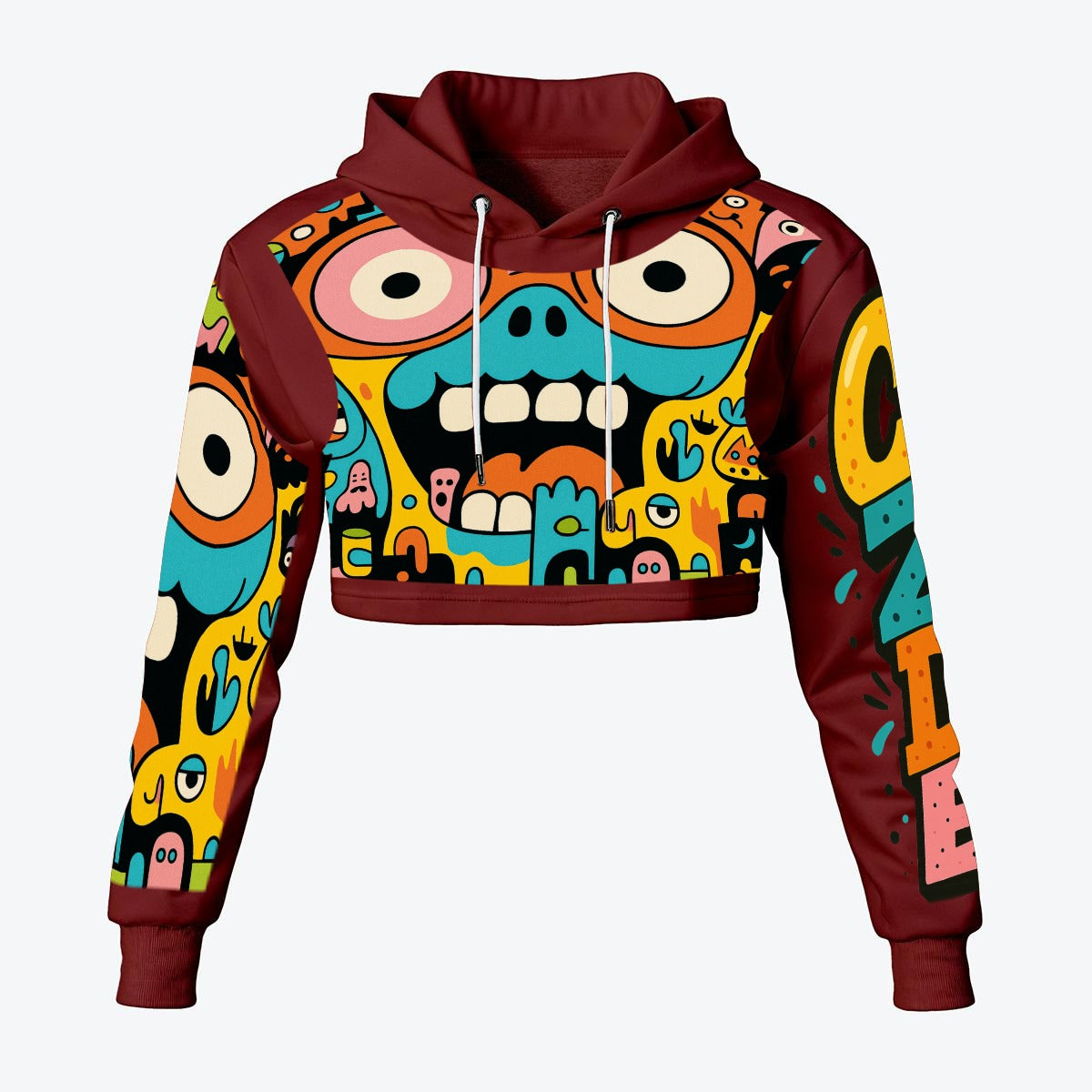 Designed for those who love vibrant, cartoon-inspired fashion, this cropped hoodie is perfect for casual outings, festivals, or simply standing out in your everyday look. The colorful graffiti-style artwork combined with a flattering cropped cut gives you an urban aesthetic that screams confidence.